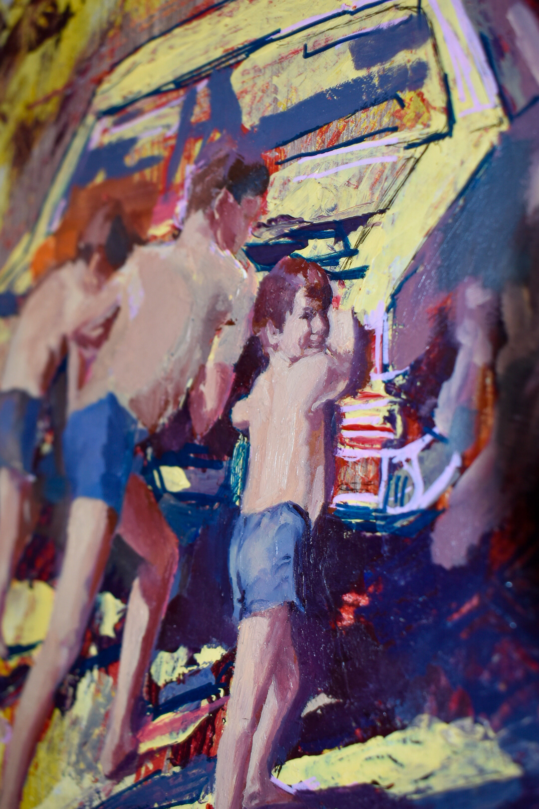 I love the way that the brain fills in so much detail looking at the youngest childs face, and the texture of small globs of paint dried around palette knife strokes.